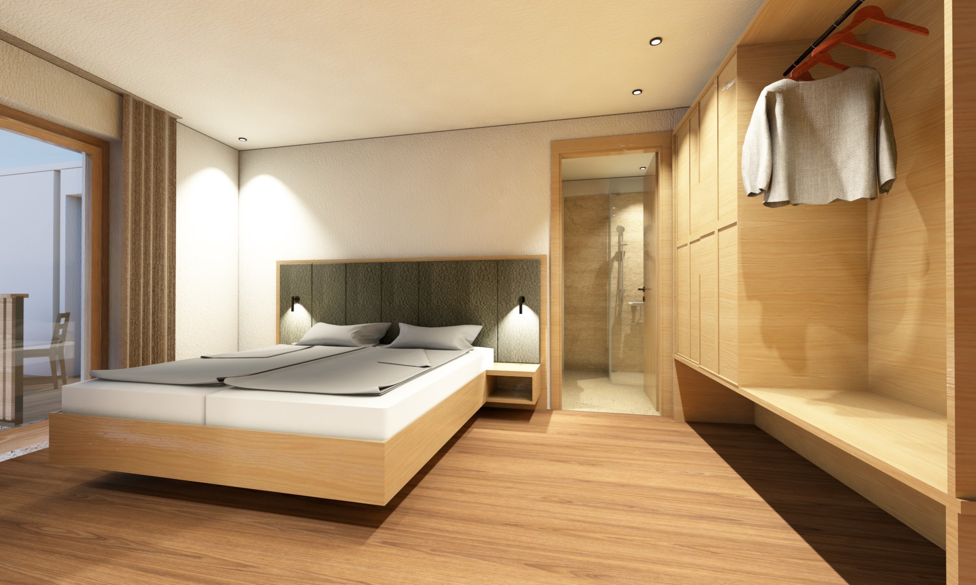 - Camera da letto / Bagno con doccia, WC, bidet e asciugacapelli