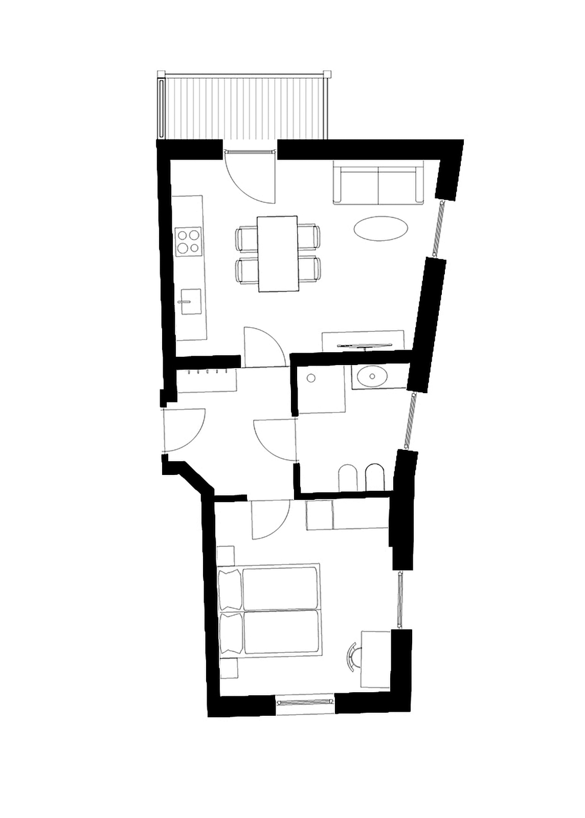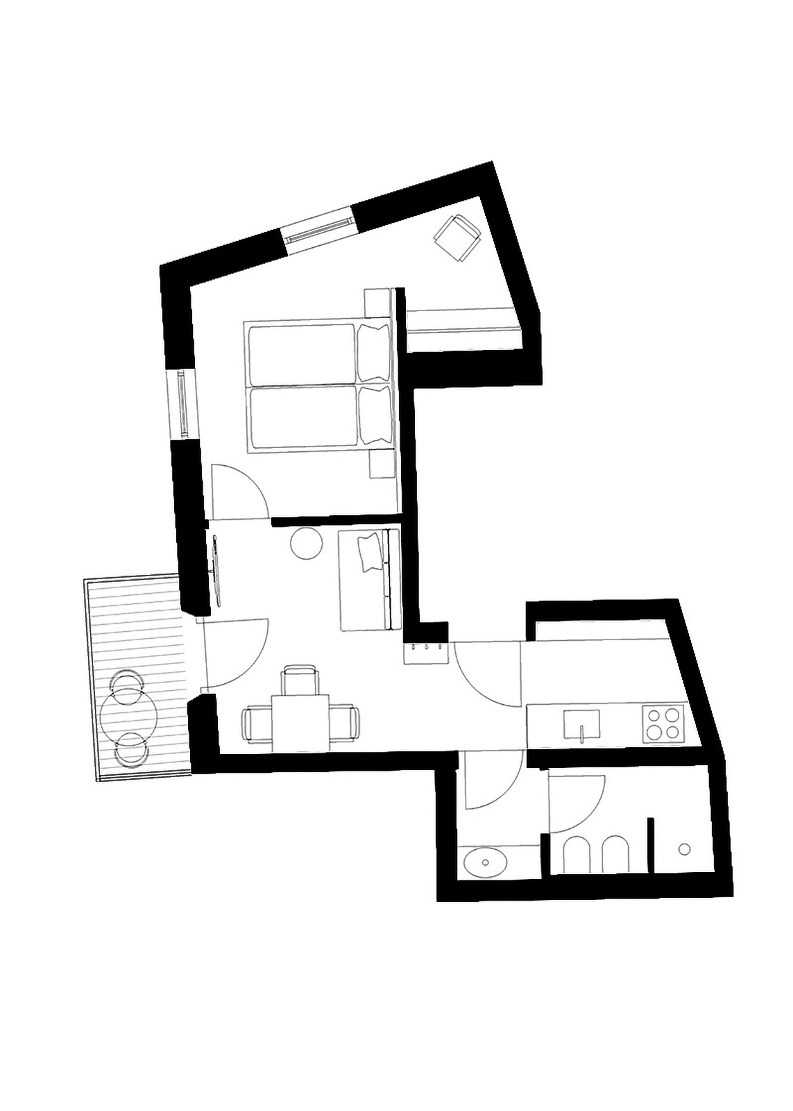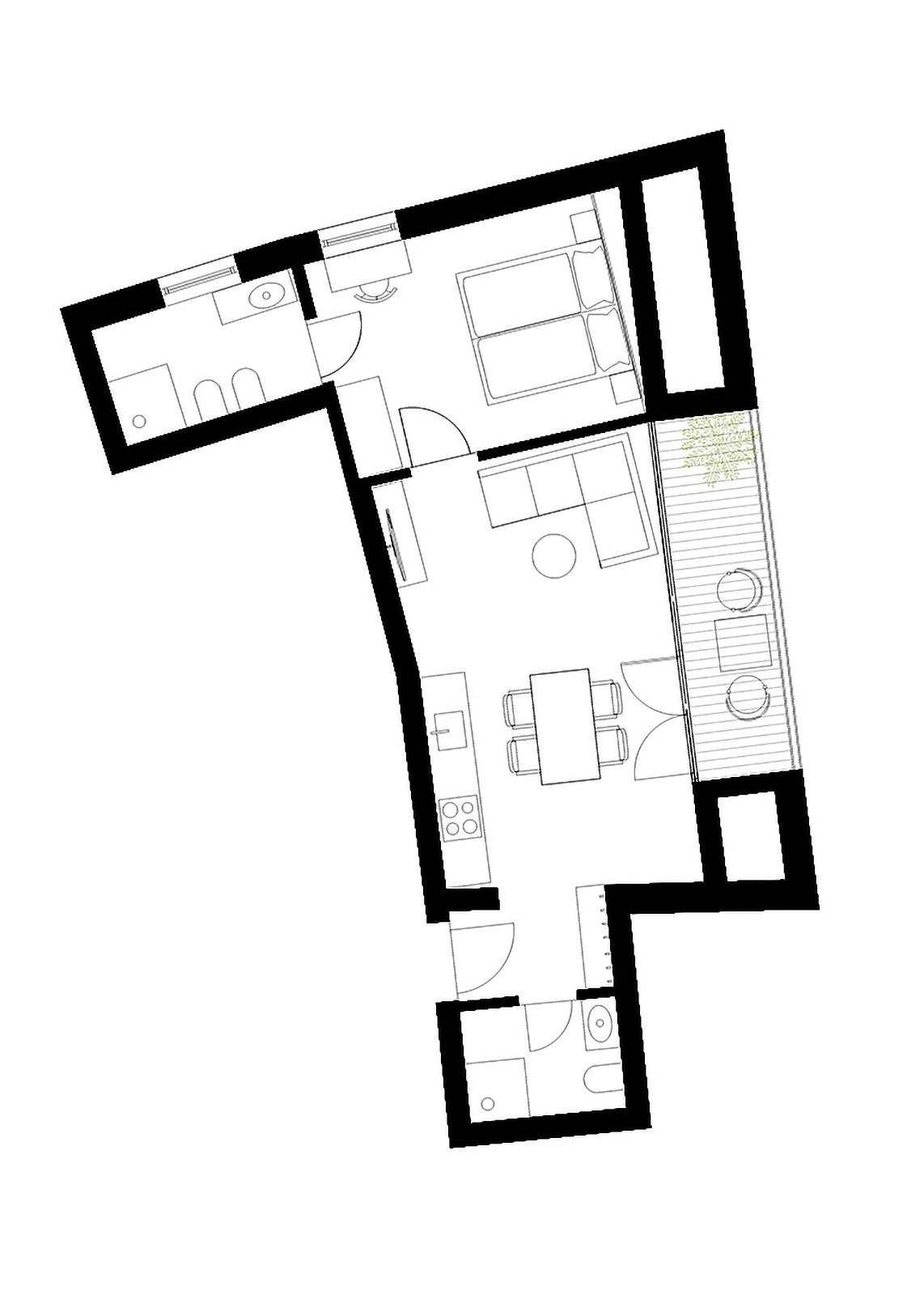 Un nido accogliente con balcone soleggiato, perfetto per coppie in cerca di intimità. Camera da letto, cucina abitabile e bagno in 35 m² di puro comfort.